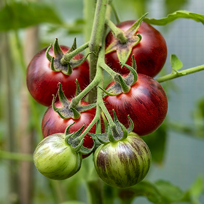 De donkere schouders van Black Strawberry worden veroorzaakt door anthocyanen. Dat zijn natuurlijke kleurstoffen die je ook kent van blauwe bessen, druiven en rode kool. Bij tomaten zitten anthocyanen vrijwel alleen in de schil en hebben ze niets te maken met rijpheid. Ze ontstaan als reactie op: