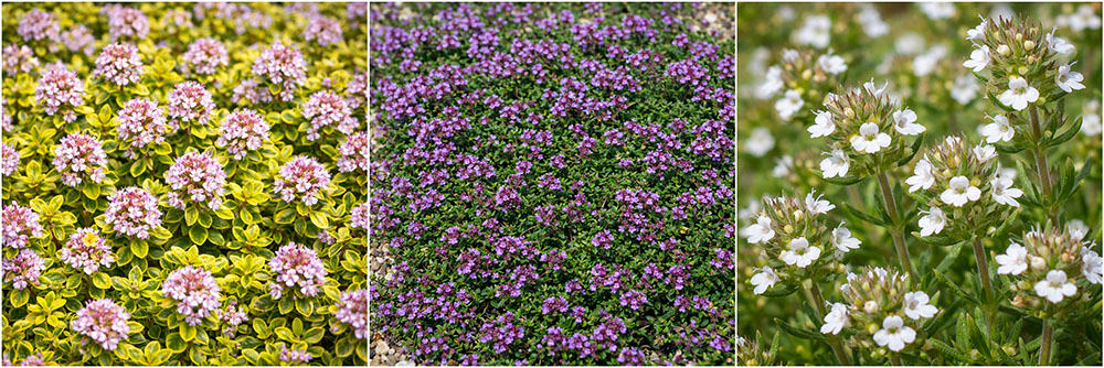 Tijm is meestal meerjarig en winterhard, houdt van zon en goed doorlatende grond. Oogsten doe je net voor de bloei, anders missen je gerechten de echte punch. Bodem bedekkende soorten zijn perfect tussen stenen, in grind op bijv. een parkeerplek, tegels, in rotstuinen of als een groen en heerlijk geurend tapijtje voor je tuinfeestjes.